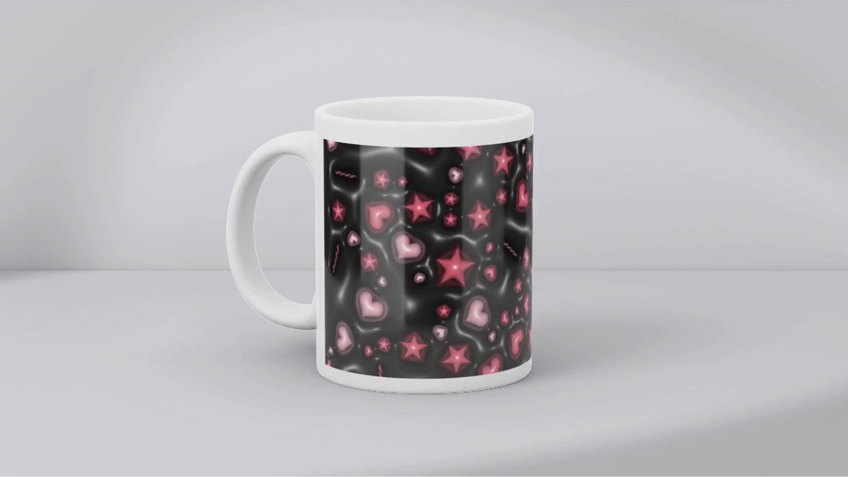3D Effect Black With Hearts - Mug